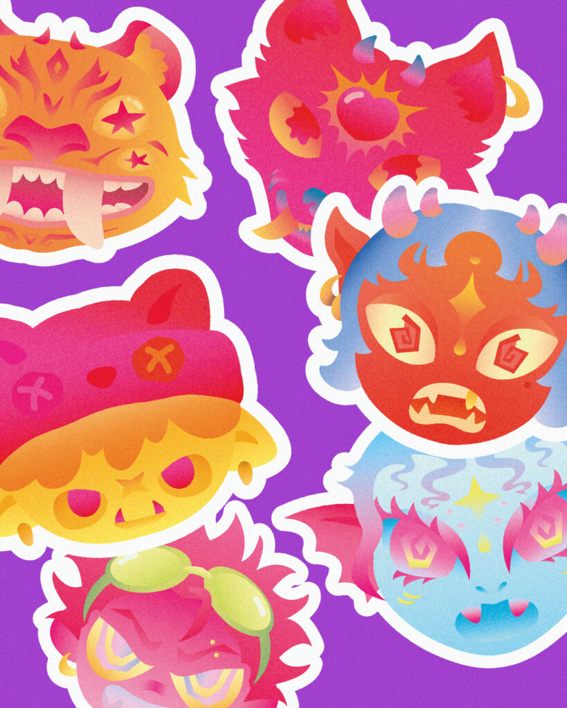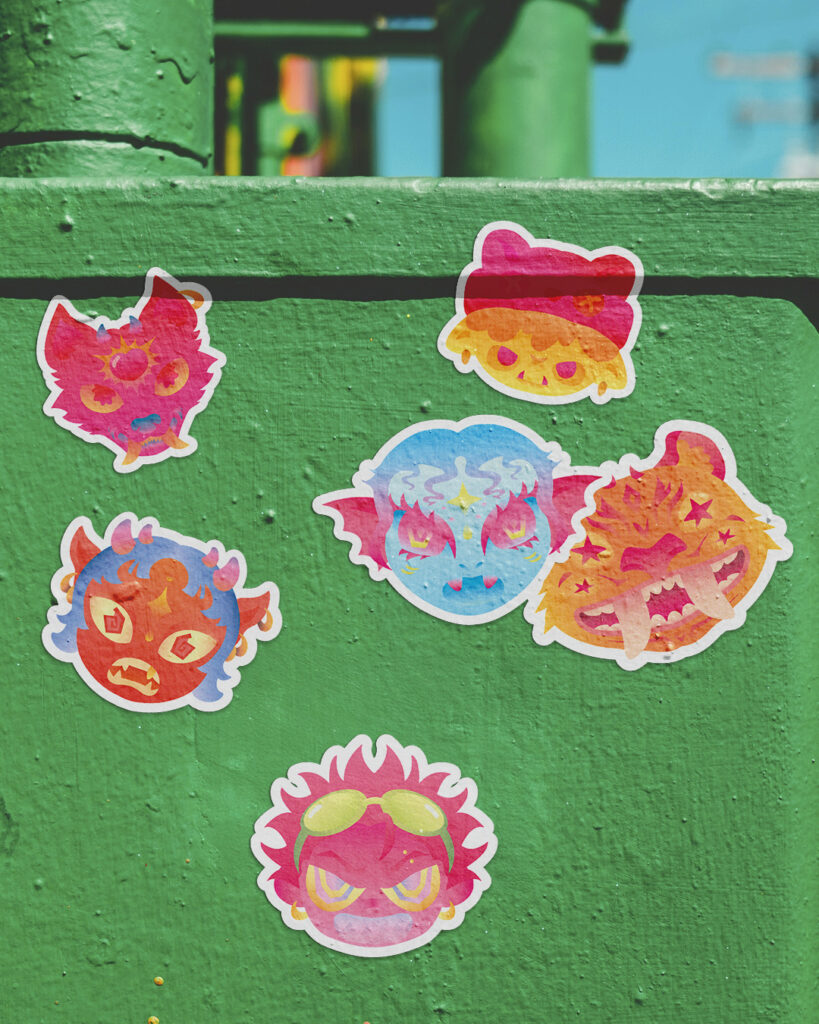 Cette série de stickers cherche à rompre avec l’image classique du monstre effrayant. Des créatures hautes en couleur, ludiques et sympathiques, qui donnent envie de sourire plutôt que de fuir !